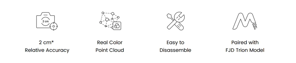 Providing RGB and texture information to point clouds and mesh, FJD Trion Camera is an optional add-on video camera for FJD Trion S1. With the FJD Trion Model, image and scan data are synchronised together accurately, making it connect to the real world seamlessly.